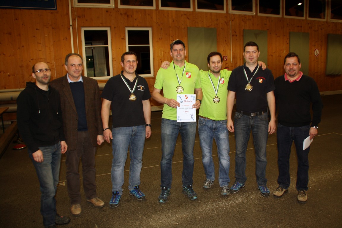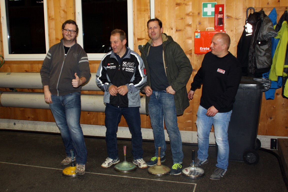 Bei den Vierermannschaften standen das Teamplay und die richtige Taktik im Vordergrund. Um möglichst viele Punkte zu sammeln, galt es einerseits nicht nur den eigenen Stock so nahe wie möglich an der Daube zu platzieren sondern in der Folge bei weiteren Schüssen gekonnt auch die Stöcke der gegnerischen Mannschaft möglichst weit weg von der Daube zu stoßen. Im Idealfall wurde der gegnerische Stock gleich aus dem Kasten (oder Zielfeld) befördert!