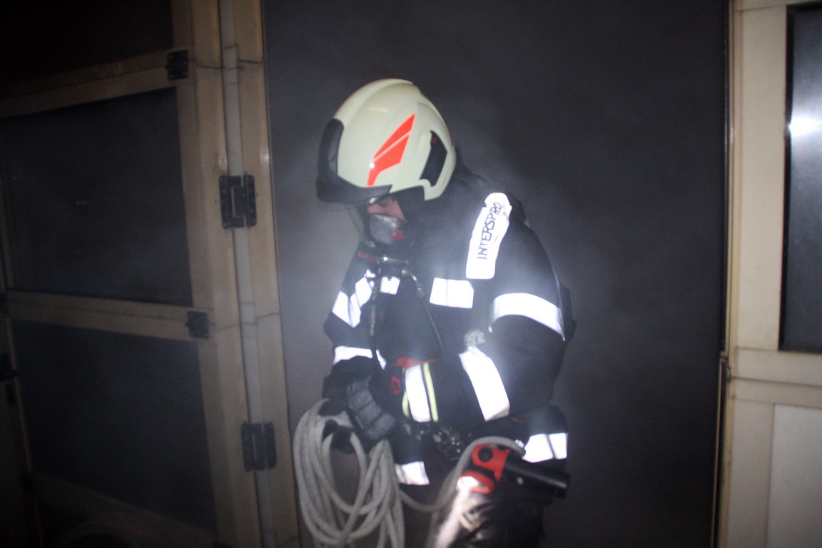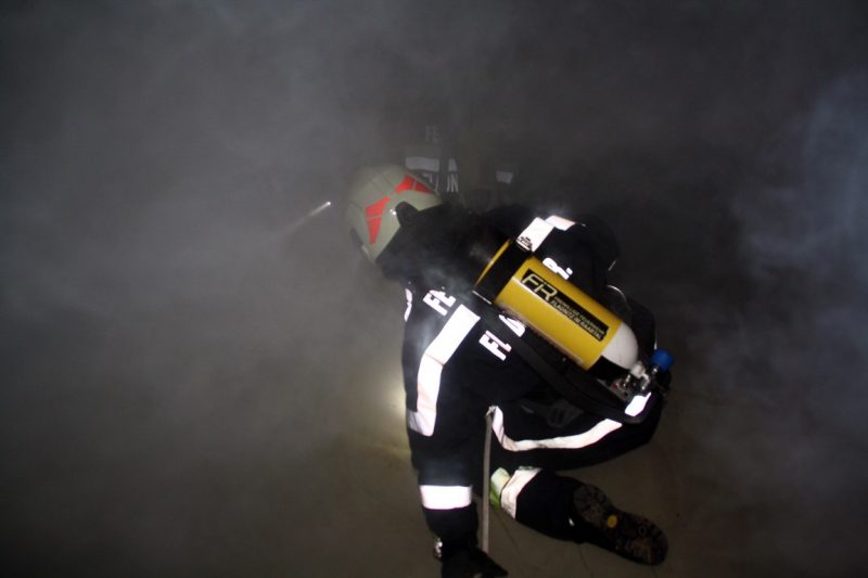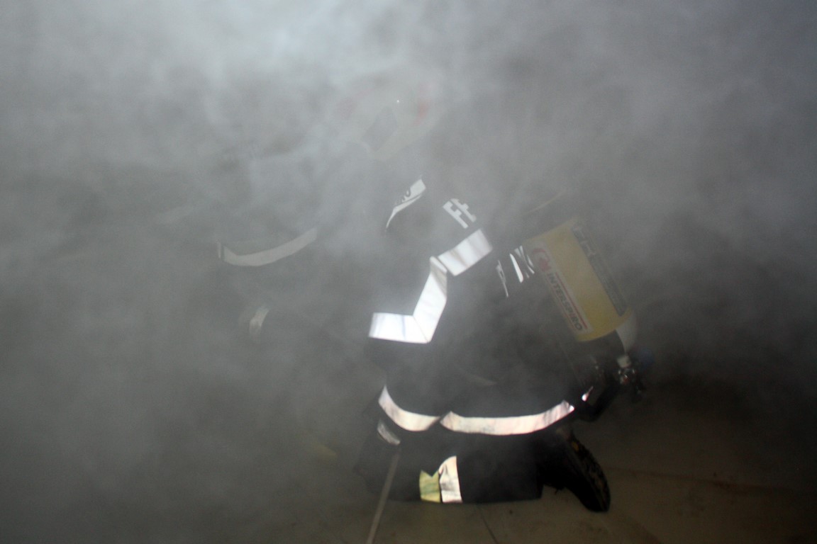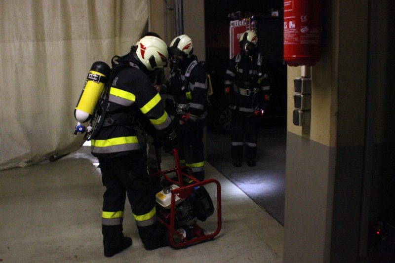 Nach der Rettung der vermissten wurde der Druckbelüfter eingesetzt um die Hallen wieder vom Rauch zu befreien.