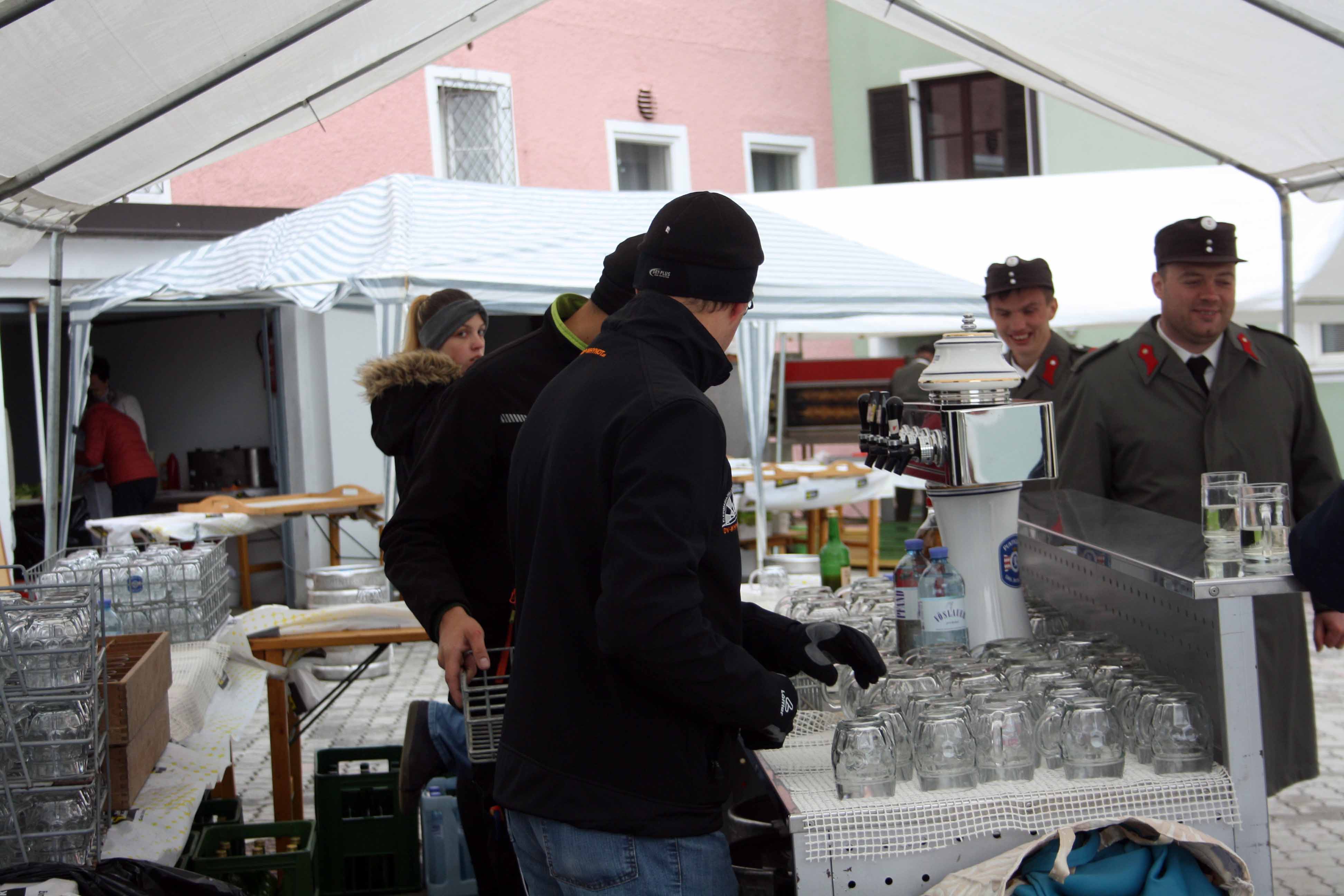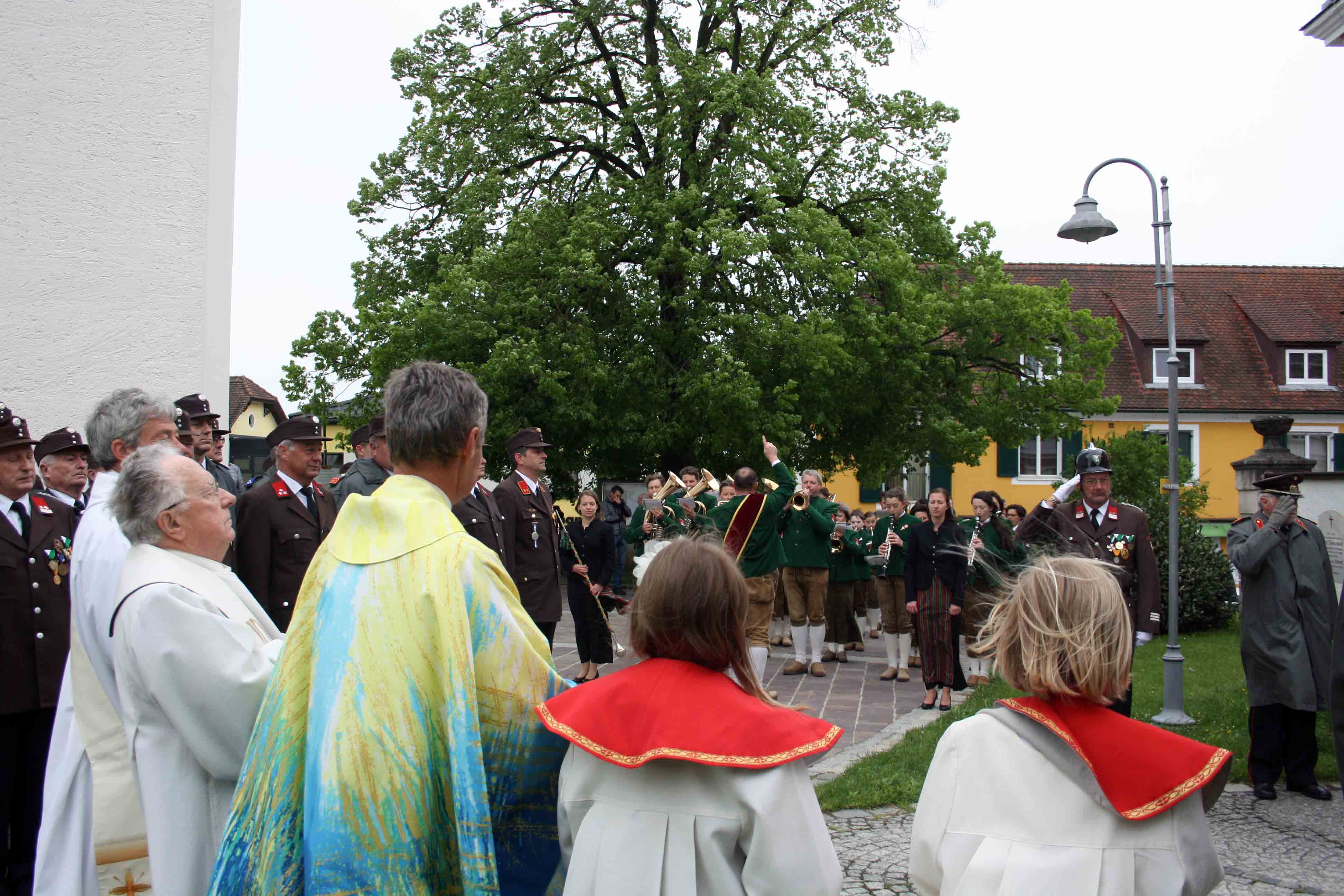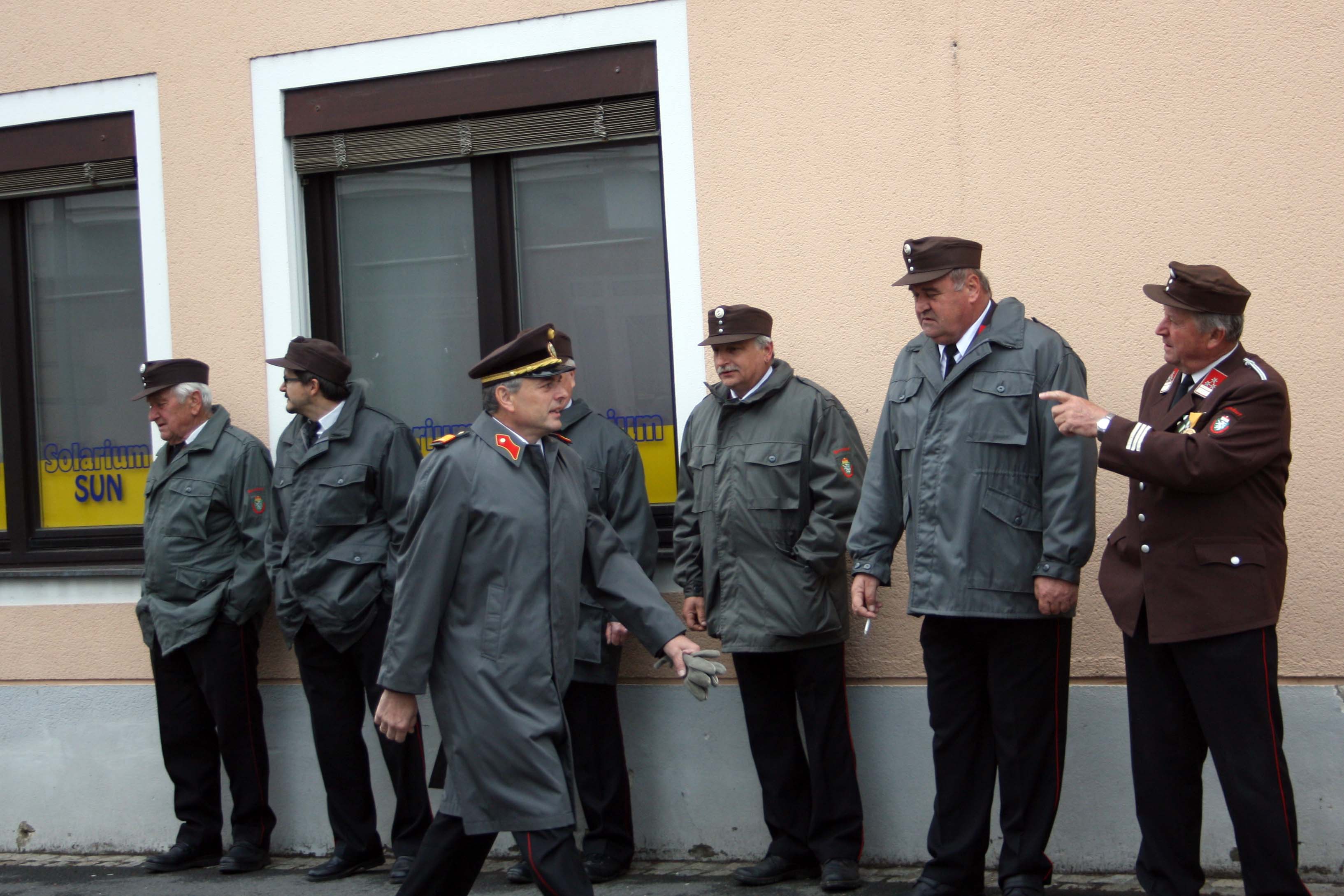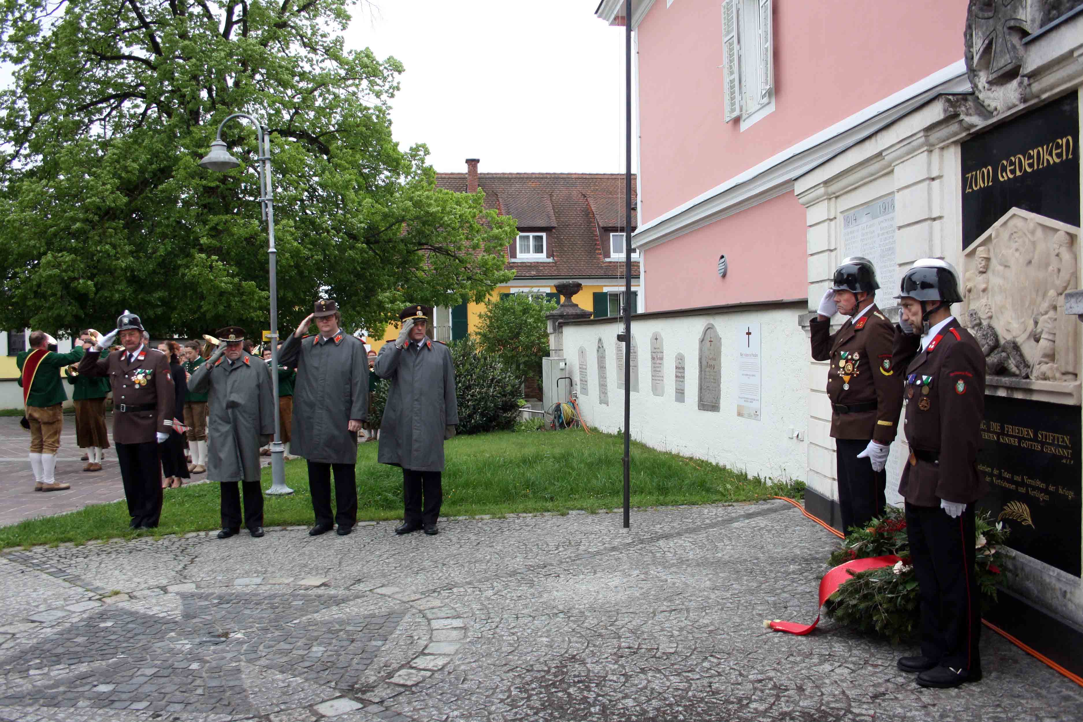 Bei kühlem und windigen Wetter traten die Mitglieder des Musikvereins Kirchberg an der Raab, die Feuerwehren der Pfarre Kirchberg und die Mitglieder des Roten Kreuzes an und marschierten zum Hauptplatz bei den Ehrengästen vorbei bis weiter zur Pfarrkirche. Nach der Kranzniederlegung beim Kriegerdenkmal wurde in die Kirche einmaschiert, wo der feierliche Gottesdienst statt fand.