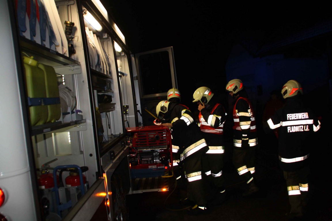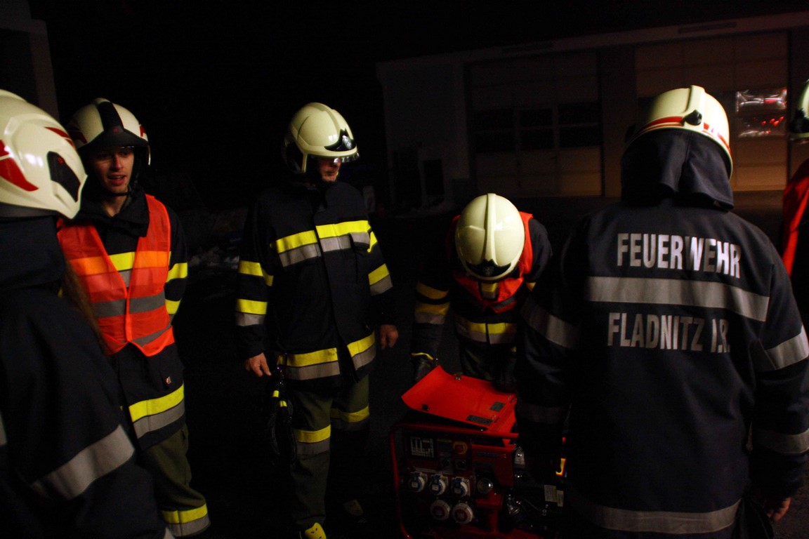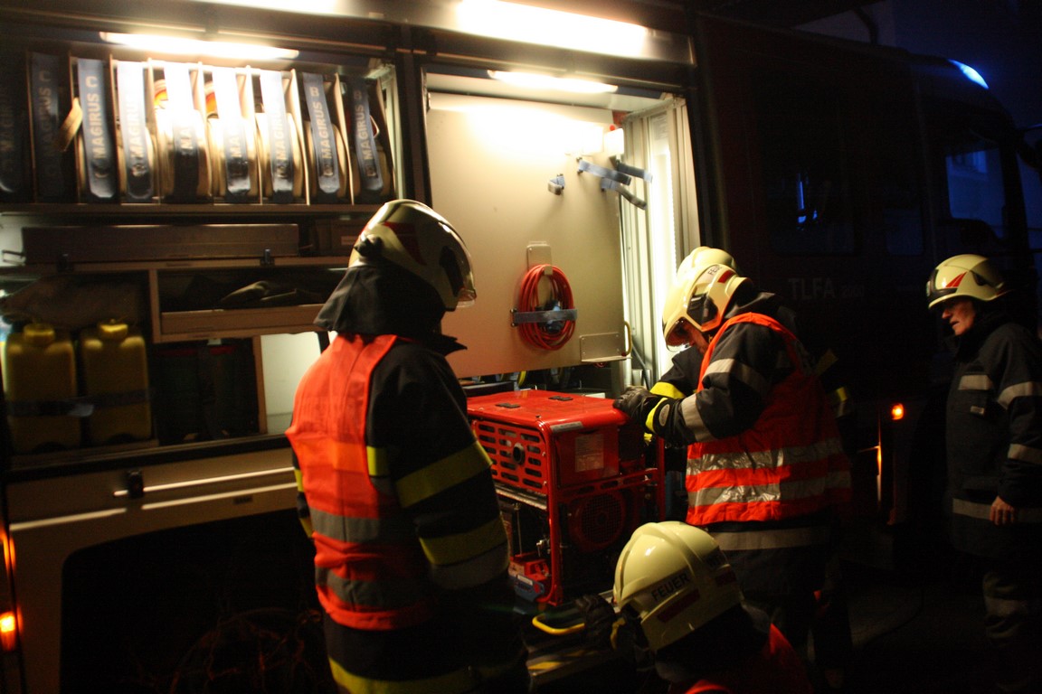Des Weiteren wurde das Beleuchten einer Unfallstelle mit Halogenscheinwerfern und dem Fluchtlichtmast am Tanklöschfahrzeug beübt. Dabei wurde auf die ordnungsgemäße Verlegung der Stromkabel und Position der Scheinwerfer geachtet. In diesem Zuge wurde auch das Notstromaggregat von den Übungsteilnehmern in Betrieb genommen.