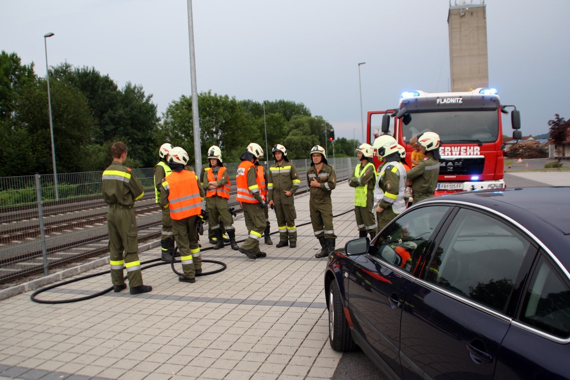 Die heutige Übung führte uns zur P&R am Bahnhof Fladnitz im Raabtal, Übungsannahme war ein Verkehrsunfall. Für die 18 teilnehmenden Kameraden stand dabei das richtige Absichern einer Einsatzstelle im Mittelpunkt.