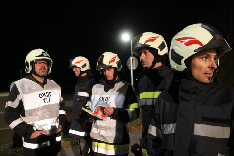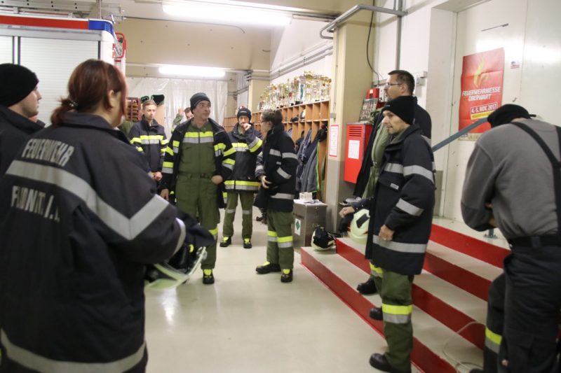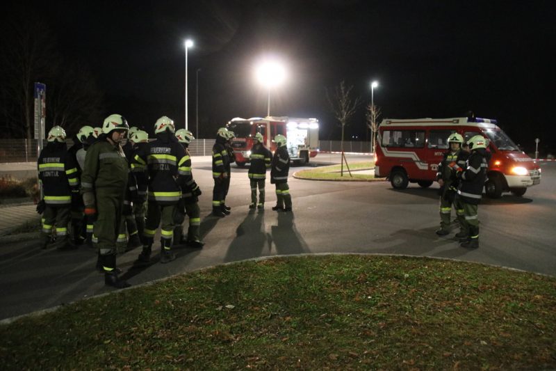 Nach einem kurzen Briefing zum Übungsablauf rückten 20 Feuerwehrmitglieder der FF Fladnitz mit MTF sowie TLF zum Bahnhofsparkplatz aus. Dort fanden die Feuerwehrleute ein verunfalltes Auto mit Gefahrgut und einer verletzten Person vor.