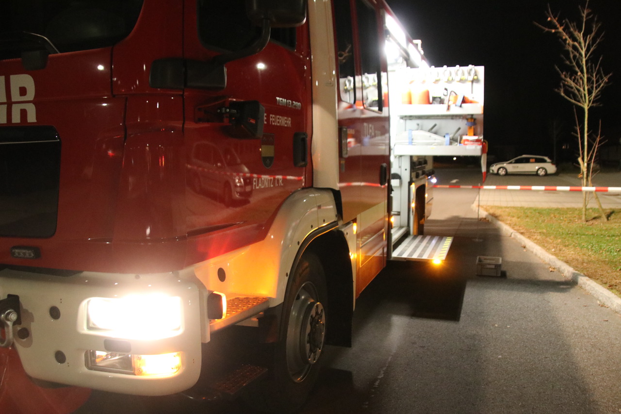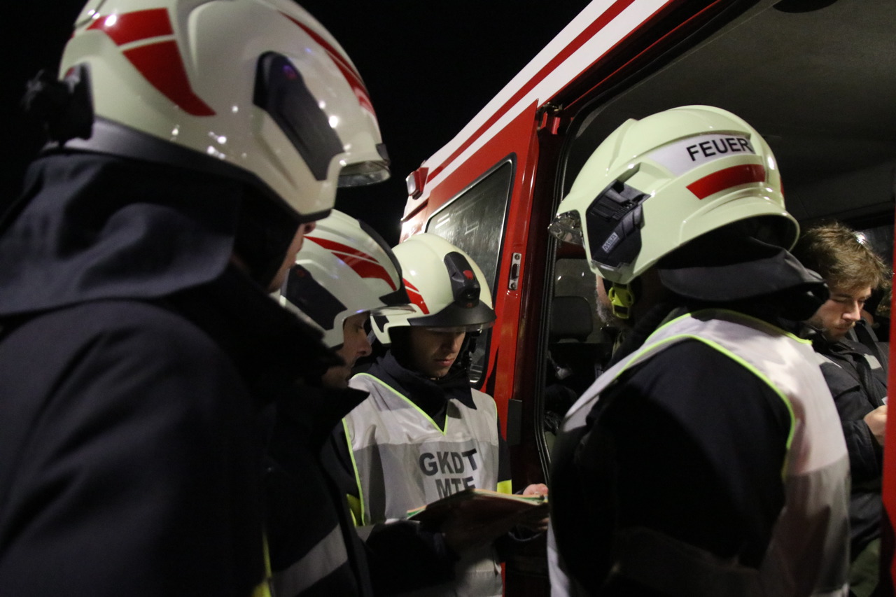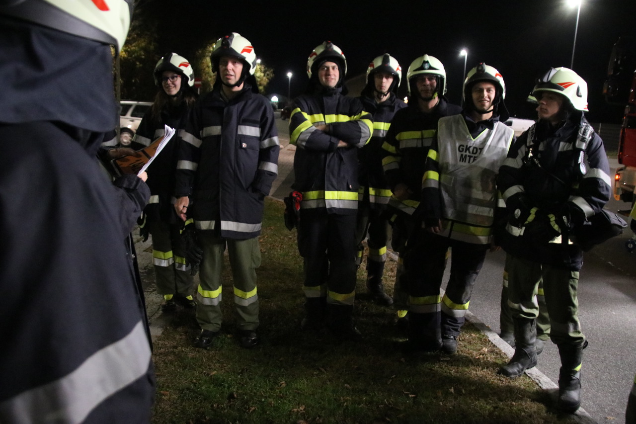 Nach einem kurzen Briefing zum Übungsablauf rückten 20 Feuerwehrmitglieder der FF Fladnitz mit MTF sowie TLF zum Bahnhofsparkplatz aus. Dort fanden die Feuerwehrleute ein verunfalltes Auto mit Gefahrgut und einer verletzten Person vor.