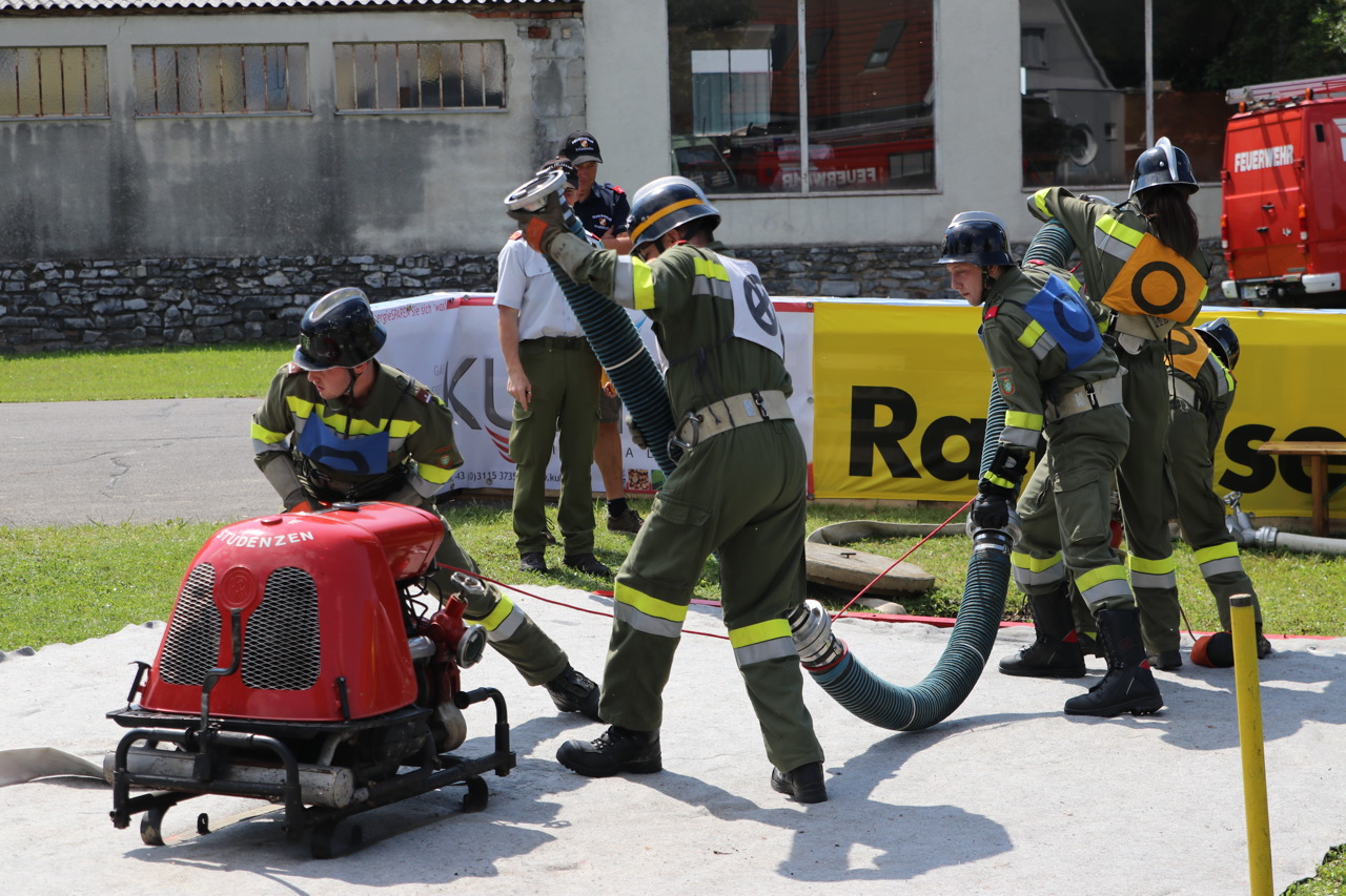 Nach einer kurzen Einschulung auf die Pumpe, startete der Bewerb unter besten Bedingungen pünktlich um 15 Uhr. Nachdem alle Durchläufe abgeschlossen wurden, fand die Schlusskundgebung statt, bei der folgende Ergebnisse bekanntgegeben wurden: