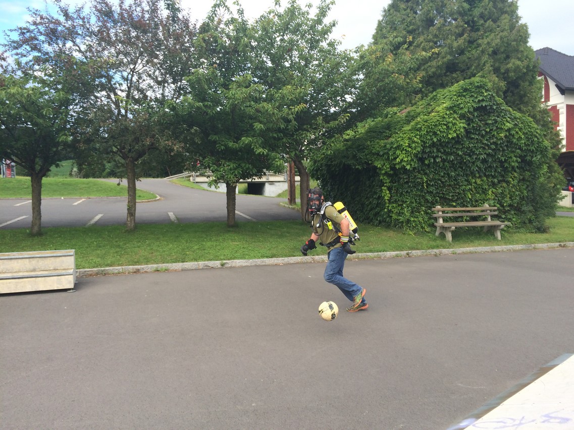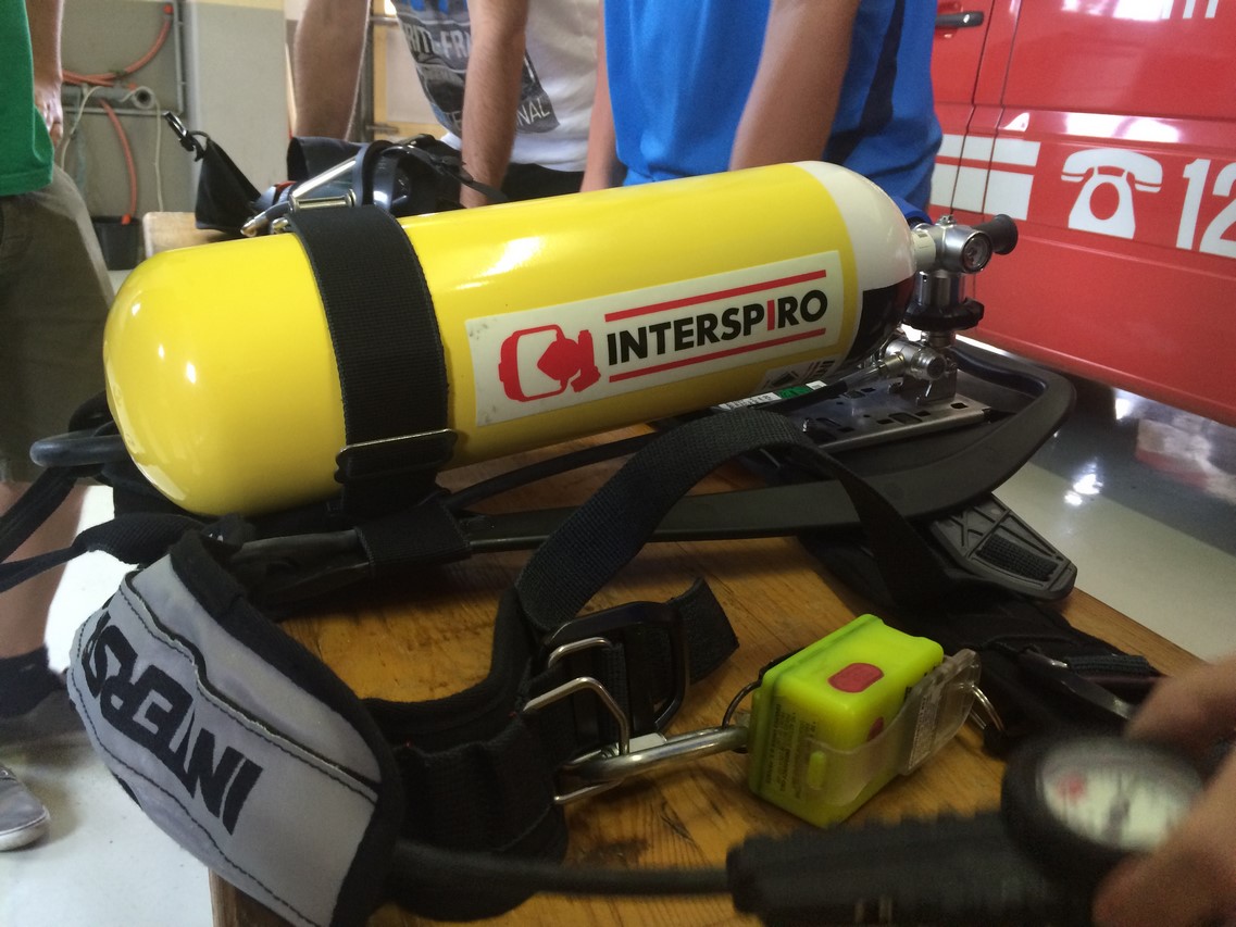 Zu Beginn des Jahres waren verschiedene Gerätehersteller bei uns zu Gast, um ihre Geräte zu präsentieren. Die Entscheidung fiel auf ein „Ein-Flaschen-System“ der Firma Interspiro, das mit 300 bar Flaschendruck arbeitet. Ein Merkmal der Ausrüstung ist ein sogenanntes Überdrucksystem, das verhindert, dass Rauchgase in die Atemmaske eindringen können. Zusätzlich sind die Atemmasken mit einem drahtlosen Maskenfunksystem ausgestattet. Durch dieses System ist es möglich, sich im Trupp zu verständigen, da in jeder Maske ein eigenes Funkgerät eingebaut ist. Das ist insofern hilfreich, da jedes Mitglied des Atemschutztrupps die Funkgespräche mitverfolgen und im Notfall selbst einen Funkspruch abgeben kann.